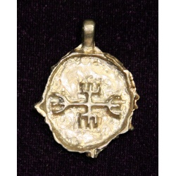 based on a Bulgarian archeological find, item measures about 2" at it's widest point.
