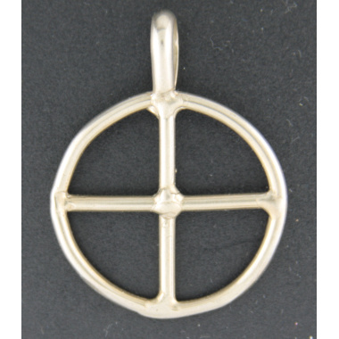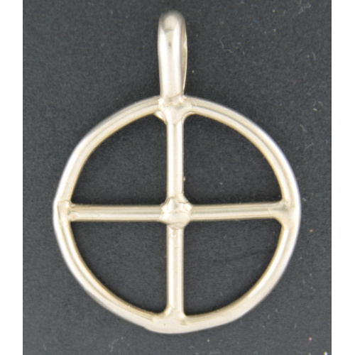 large, simple sunwheel pendant with large bail to fit any size chain. about 1.5" including bail.